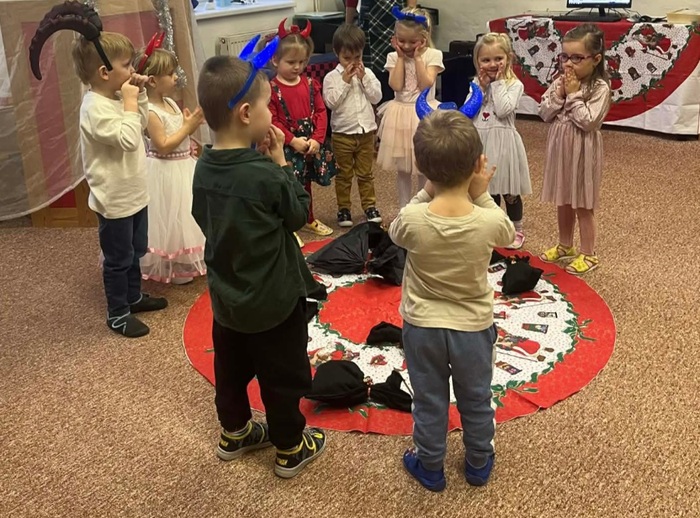 Na úplný závěr programu si děti rodiče přivolaly do společného kruhu, kde si všichni dohromady zazpívali vánoční koledu „Rolničky“, tentokrát s doprovodem jednoduchých hudebních nástrojů, které děti s nadšením rozeznívaly. Tento okamžik vytvořil krásnou, téměř kouzelnou atmosféru, která patří k Vánocům.