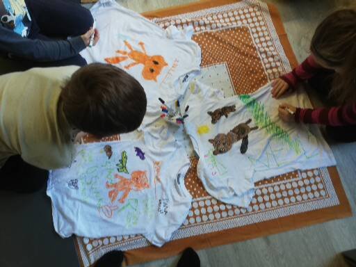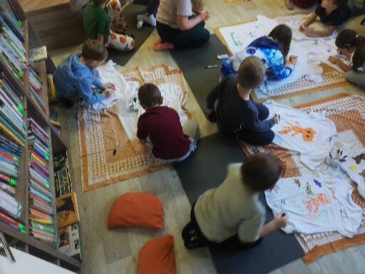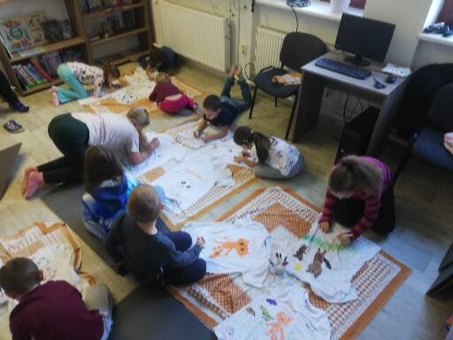 Děti z první třídy byly paní knihovnicí pasováni na členy Bobřího klanu a obdržely trička, která si společně s ostatními dětmi pomalovaly.