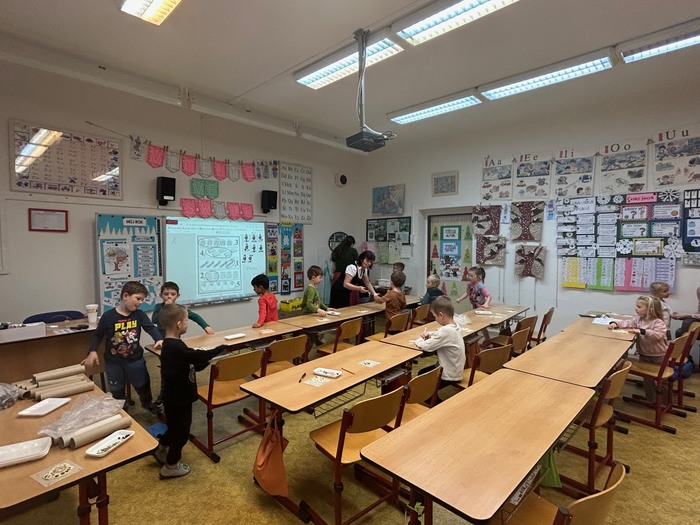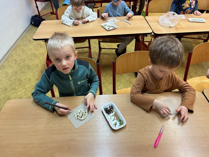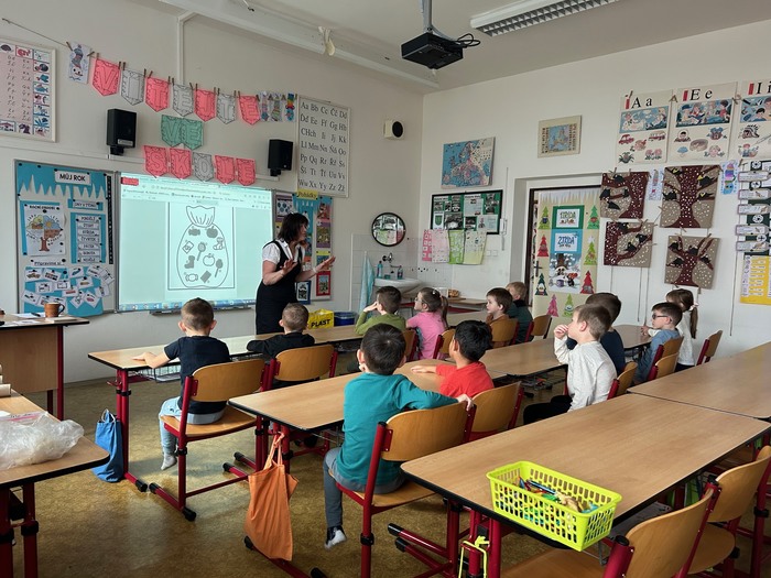 Poslední Dobrodružné setkání rodičů a dětí před lednovým zápisem do základní školy se uskutečnilo v úterý 2. 12. 2025 v příjemné předvánoční atmosféře. Program byl zaměřen na ukázku aktivit, s nimiž se děti při zápisu mohou setkat. Děti si vyzkoušely úkoly před interaktivní tabuli – vyhledávání shodných obrázků, rozvoj matematických představ, orientaci v prostoru a další cvičení podporující školní zralost. Všechna témata byla propojena s tradiční přípravou na příchod Mikuláše, anděla a čerta, kteří k adventnímu času neodmyslitelně patří.