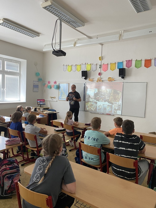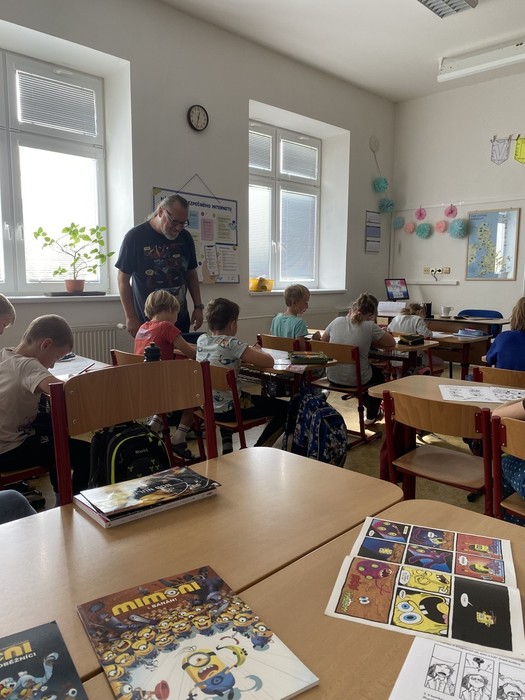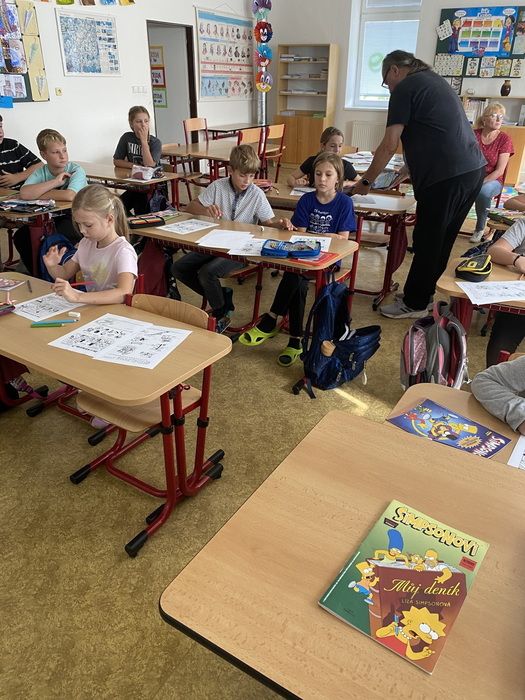 Toto vše bylo náplní dvouhodinového setkání, které bylo plné kreativity, fantazie a nového poznání. Žáci se nejen dozvěděli mnoho zajímavých informaci ze zákulisí komiksové tvorby, ale sami si vyzkoušeli nakreslit komiksovou postavu a vytvořit k ní kratičký příběh. Nyní už nezbývá, než si nějaký super komiks přečíst.