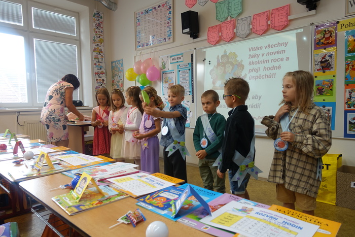 Po oficiální části radostný den pokračoval. Prvňáčci společně s rodiči odešli do své nové třídy, kde je čekala nadílka učebnic a drobných dárků. Odnášeli si nejen školní pomůcky, ale především pocit začátku nové životní etapy.