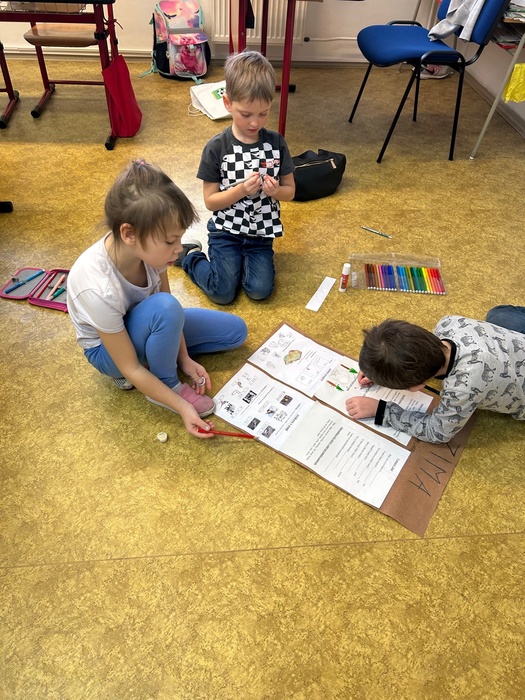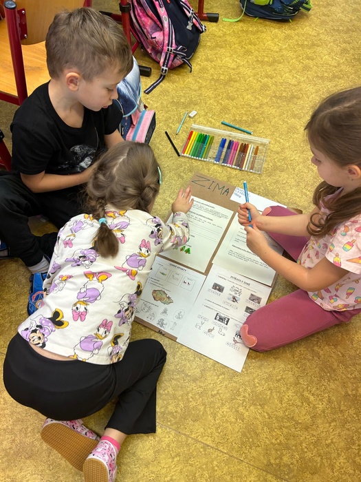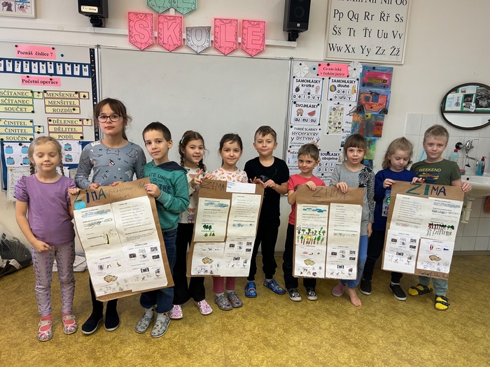 S žáky 1. a 2. ročníku jsme se rozhodli využít motiv „Zimy“ k vytvoření společného projektu, ve kterém mohli skupinově projevit získané vědomosti z hodin prvouky, naučit se spolupracovat s kamarády a uplatnit vlastní kreativitu. Důležitou součástí projektu bylo hledání odpovědí na zadané úkoly a rozvíjení kritického myšlení. Na závěr měla každá skupina možnost představit svou práci ostatním a zhodnotit ji.